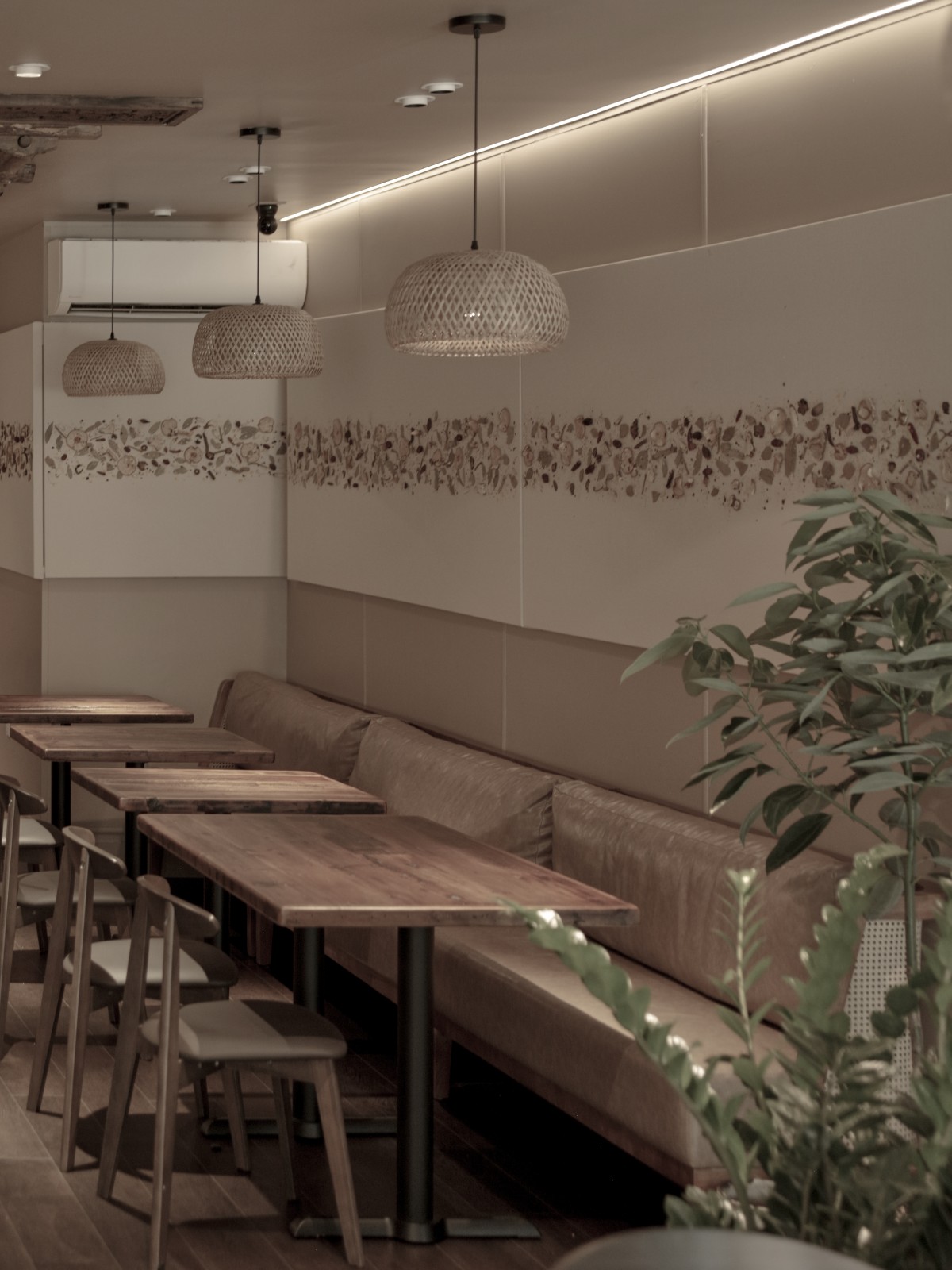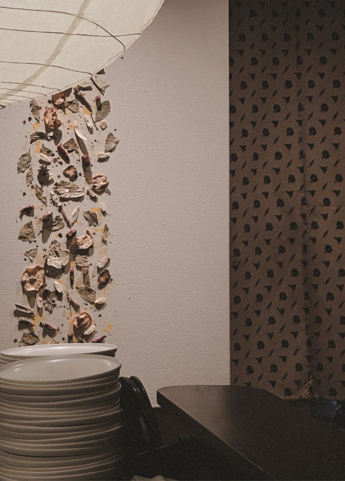 香料是中餐调味的灵魂,也是中餐哲学的延伸,香料间的碰撞造就了中餐的多样性。我们将香料作为空间中艺术装置,在空间的一周通过画布与香料装饰空间,输出了品牌对于中餐的专业度以及追求。