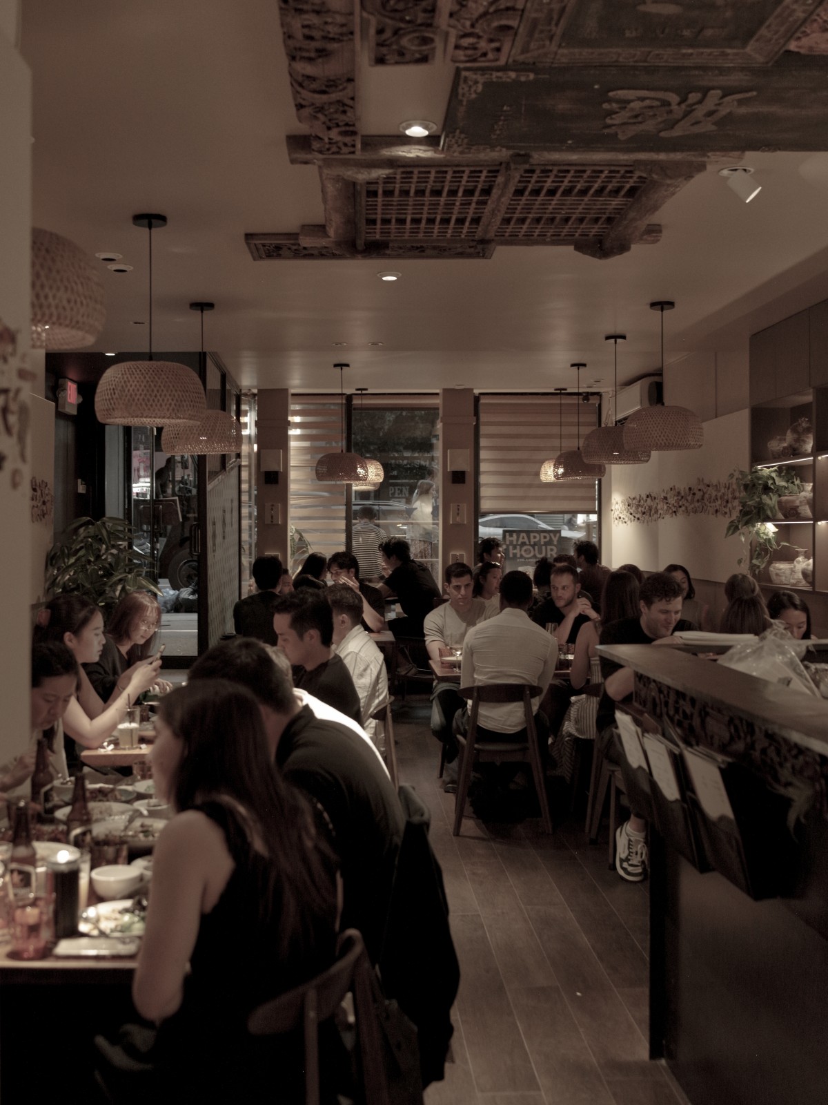 现场位于纽约曼哈顿东城区,曾经是一家日料店,具备基础的硬装和后厨的规划,我们在原有的基础上对空间进行改造,通过棚面、地面以及墙面装饰和软装营造打造氛围。