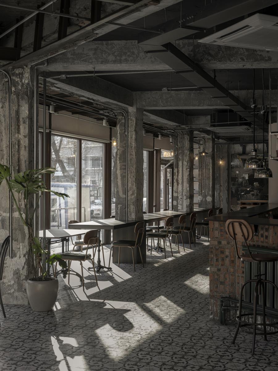 The diner is located on the first floor of a street in the old district of Shenyang. The storefront faces two sides. Since the site used to be a grocery store, the original layout is mostly one open space, enclosed by floor-to-ceiling windows.