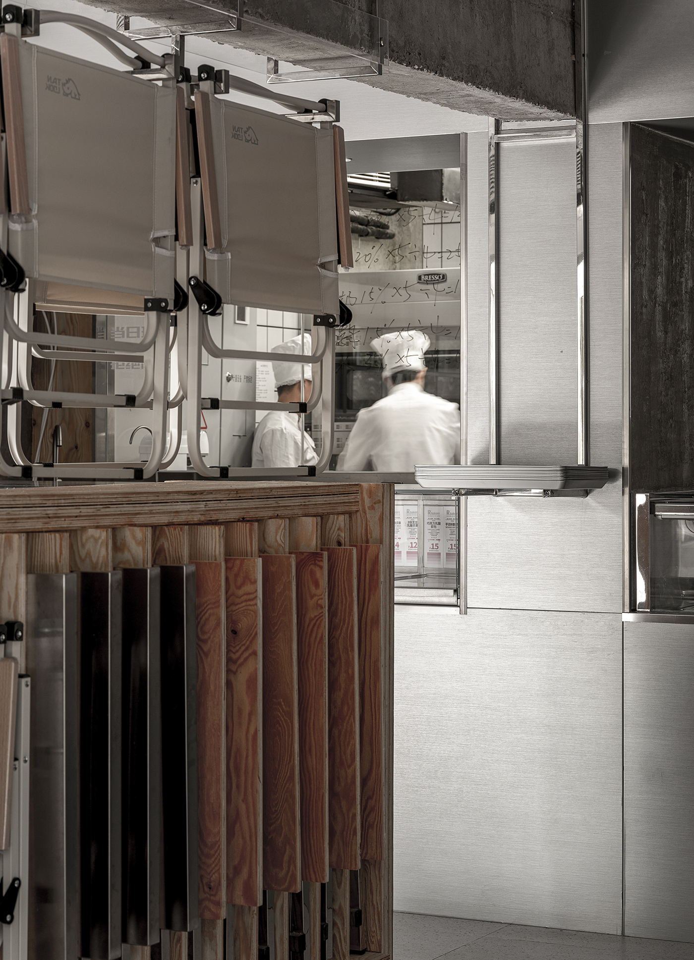 We have chosen approachable materials to construct this bakery space, including stone, metal, embossed steel panels, white checkered tiles, and more. We have directly applied signage and typography to certain surfaces, straightforwardly conveying the functionality and content of the space to people. We aim to create a sense of "everyday ambiance" by combining materials and their applications to provide a novel yet familiar atmosphere.
