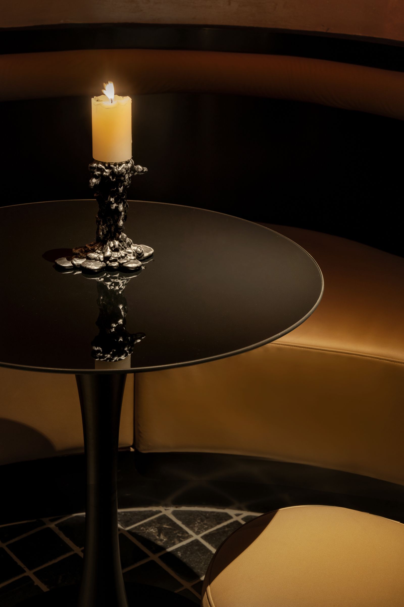 We hope this space has an amber-like quality, encapsulating time like the city does. The color tone of the space presents a quiet immersion at midnight, with the small window at the entrance letting in the night, wrapping the night within the capsule and healing everyone.