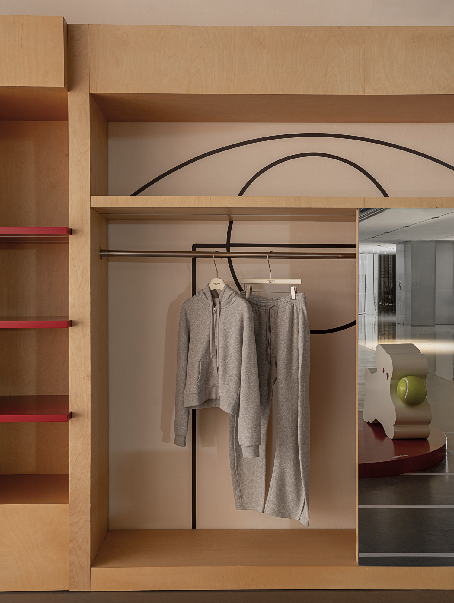 Athletic elements were abstracted and embedded in a lighter, more approachable way. Training and competition are translated into tangible spatial cues, allowing the spirit of movement to enter daily life with ease and openness.